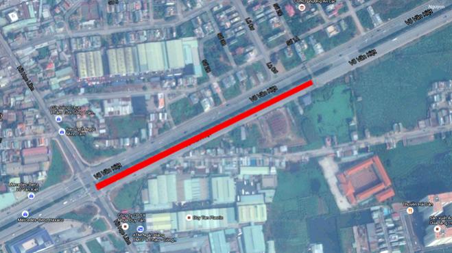 Đoạn đường (màu đỏ) dự kiến sẽ sửa chữa trong thời gian tới. Ảnh: Google Maps.