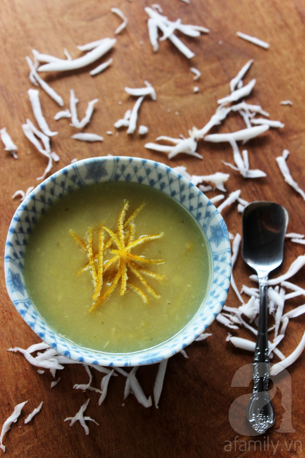 Sau bữa ăn, bạn hãy tráng miệng bằng chè lục tàu xá được chế biến theo cách dưới đây. Chè ngọt nhẹ, mùi quýt thơm thoang thoảng quện nước dừa béo ngậy, nồng nàn, đậu xanh sánh mịn sẽ làm say lòng bạn. Món ăn này bạn có thể ăn bất cứ lúc nào nhé!