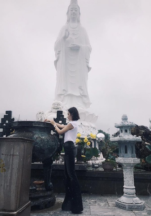 Mới đây, trên trang cá nhân của mình, Angela Phương Trinh vừa chia sẻ bức ảnh đi thăm chùa Linh Ứng ở Đà Nẵng với cảm xúc thanh tịnh, yên bình. Cô nàng đến đây để thành tâm cầu nguyện sự bình an, hạnh phúc đến với gia đình, những người thân yêu và cũng không quên mong cho công việc sắp tới của mình sẽ thành công thuận lợi: “Cuối năm đi chùa cầu nguyện cho bản thân, gia đình và tất cả mọi người luôn khỏe mạnh và bình an. Và hông quên cầu cho mình sẽ hoàn thành thật xuất sắc vai diễn trong bộ phim mới, sẽ khởi quay vào cuối tháng này!”.