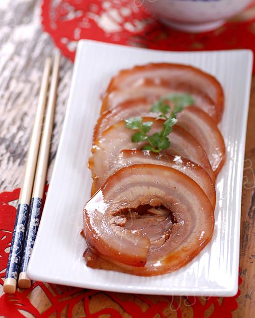 Cuối cùng là thái thịt thành từng khoanh mỏng và trang trí trên đĩa, trên bát cơm.