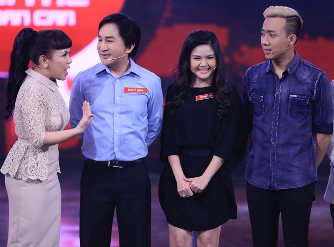 Vừa gặp Việt Hương, Kim Tử Long dành cho chị chiếc hôn ngọt ngào lên má. Trước sự hoảng hốt của Trấn Thành, nữ danh hài giải thích, trước đây chị từng có cơ hội đóng đào chính của Tử Long nên 2 anh em khá thân tình.