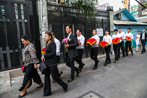 Tuy nhiên, trong đám cưới và lễ rước dâu trước đó không nhận được sự ủng hộ của bố mẹ gia đình hai bên. Được biết, cả bố Baggio và bố mẹ Quỳnh Trâm đều phản đối hôn lễ này.