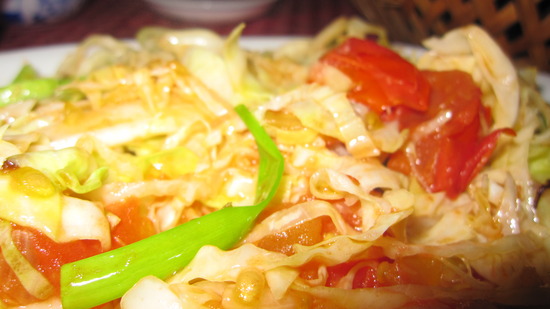 Bắp cải xào cà chua ăn với cơm nóng rất tuyệt.
