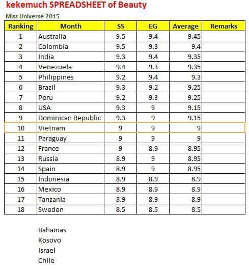 Ngay sau khi đêm trình diễn kết thúc, những chuyên trang, chuyên gia sắc đẹp hàng đầu thế giới đã đưa ra nhận dự đoán, nhận định về top 15 năm nay cũng như những ứng cử viên sáng giá cho các ngôi vị hàng đầu. Trong đó, đại diện Việt Nam luôn có mặt trong danh sách này và được dự đoán sẽ tạo nên kì tích tại Hoa hậu Hoàn vũ 2015.