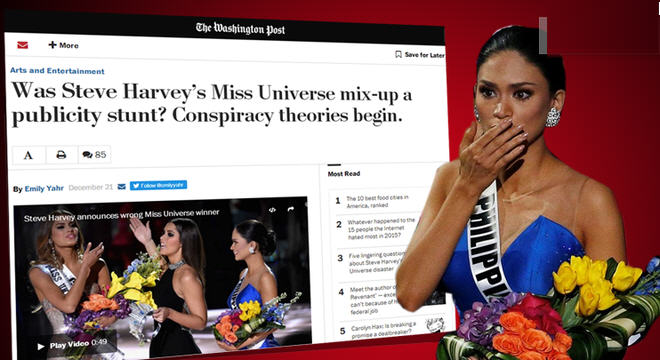 Mới đây, tờ The Washington Post đã cho đăng tải bài viết bình luận về sự việc MC thông báo nhầm danh hiệu Hoa hậu Hoàn vũ 2015. Trong bài viết này, tác giả đã đưa ra rất nhiều những suy đoán cho sự “nhầm lẫn” này.