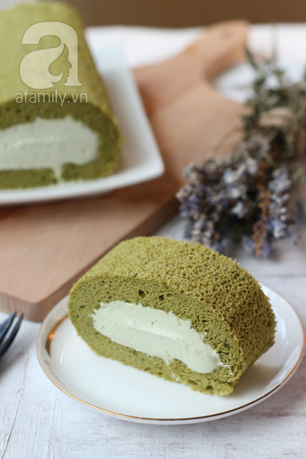 làm bánh, làm bánh cuộn, món nhật, món tráng miệng, trà xanh