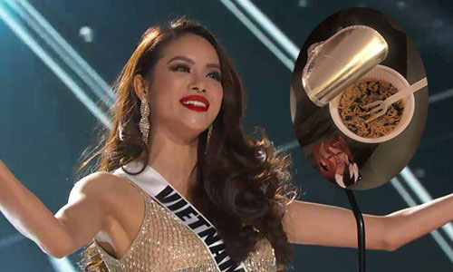 Sau đêm bán kết, Phạm Hương phải ăn vội mì tôm trong phòng lúc đêm muộn