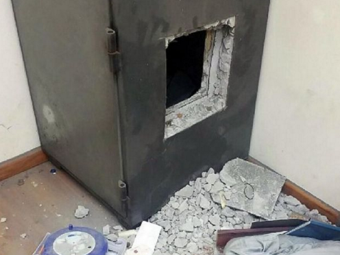 Các nghi phạm cắt một lỗ lớn trên két và lấy lượng lớn tiền mặt ở Singapore. Ảnh: CNA