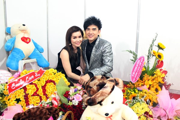 Vừa vào tới hậu trường, anh Bo đã dành những cử chỉ hết sức âu yếm, tình cảm cho vợ