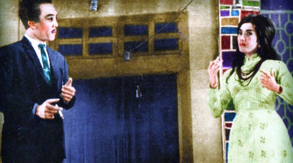 Hữu Phước và Thanh Nga trong một cảnh của tuồng xã hội. (Hình: Bộ sưu tập của Ngành Mai)