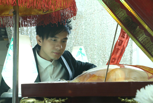 Nam ca sĩ đến thắp hương và chia buồn cùng gia đình bầu sô gắn bó với anh từ thủa mới vào nghề.