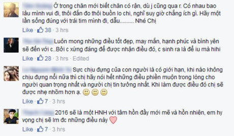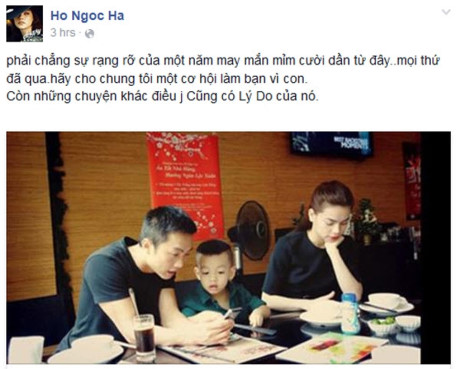 “Phải chẳng sự rạng rỡ của một năm may mắn mỉm cười dần từ đây..mọi thứ đã qua.hãy cho chung tôi một cơ hội làm bạn vì con. Còn những chuyện khác điều j (gì) Cũng có Lý Do của nó”, bà mẹ một con viết.