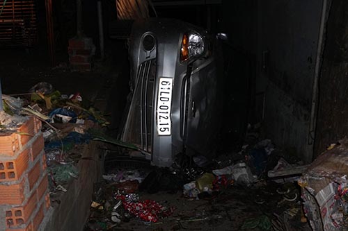 Rạng sáng 29 Tết, người đàn ông Trung Quốc chạy ôtô bán tải với tốc độ nhanh trên đường Lê Hồng Phong (TP Thủ Dầu Một), bất ngờ lao thẳng lên vỉa hè. Ôtô tông trụ điện, cây xanh rồi lao vào khu chợ Tết và chỉ dừng lại sau khi rơi xuống con hẻm, lật nghiêng.