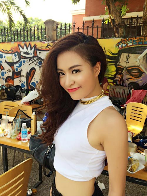Màu son cam cũng được nhiều người đẹp yêu thích, trong đó có Hoàng Thùy Linh.