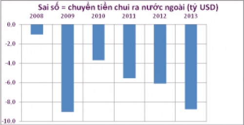 Dựa trên bảng cân đối thanh toán quốc tế của Ngân Hàng Nhà Nước và dự trữ ngoại tệ, vị cựu chuyên gia cao cấp của Liên Hiệp Quốc nhận định rằng, từ năm 2008 đến 2013, khoảng 33 tỷ đôla đã bị tuồn bất hợp pháp từ Việt Nam ra nước ngoài.