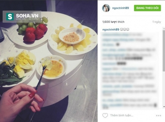 Thực đơn của Ngọc Trinh vào đêm khuya bao gồm dâu, nho, bưởi và trứng. Trong phần comment chia sẻ với độc giả, Ngọc Trinh cũng hồ hở khoe rằng mình ăn trứng ngỗng.