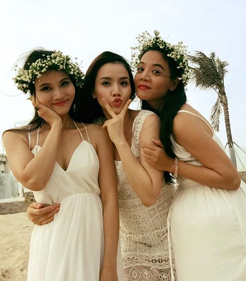 Ba chị em Trang Nhung cùng diện váy trắng, vui vẻ nô đùa trên bãi biển. Đây là những giây phút thư giãn, nghỉ ngơi tuyệt vời của Trang Nhung bên hai người chị gái sau một quãng thời gian dài bận rộn. Hai chị gái Ánh Nguyệt và Thanh Tú chụp ảnh kỉ niệm bên vợ chồng Trang Nhung – Hoàng Duy trong lễ cưới của nữ diễn viên Scandal 2.