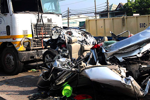 Lúc này, có nhiều xe đang đậu chờ đèn đỏ phía trước, Răng hoảng loạn, không làm chủ được phương tiện đã để xe đâm vào chiếc xe tải nhỏ phía trước. Cú va chạm làm tài xế Răng đập người vào vô lăng, mất kiểm soát. Chiếc xe Răng điều khiển sau đó lao sang bên phải. Vì Răng đạp nhầm chân ga nên xe đầu kéo tăng tốc, tông bẹp chiếc xe ô tô 4 chỗ đang đỗ phía trước.