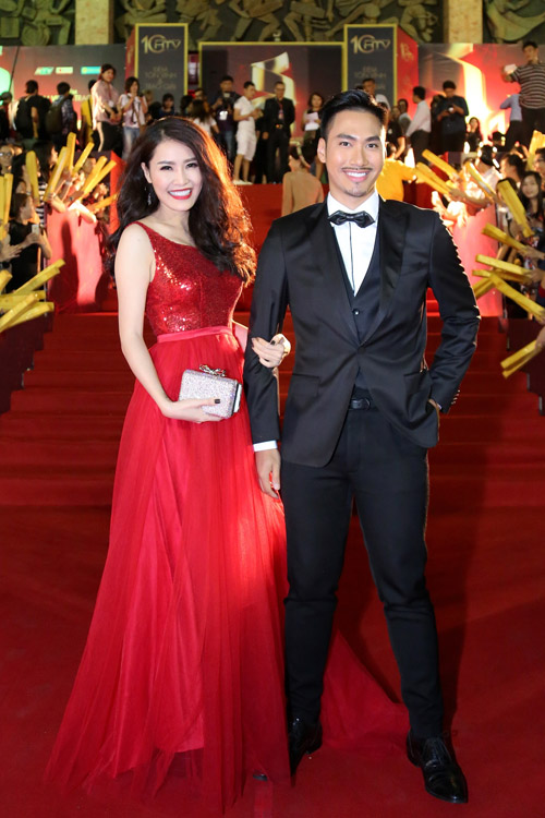Trường Giang tới khá trễ và mặc luôn bộ đồ anh vừa mới ghi hình do không có thời gian thay đồ. Cùng mặc màu đỏ nổi bật, cả 2 gây chú ý với fan hâm mộ và báo giới ở thảm đỏ của chương trình.