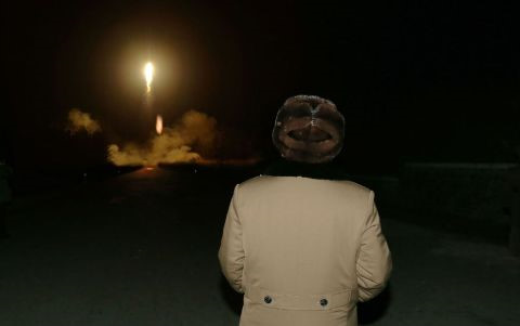 Ông Kim Jong-un thị sát một vụ phóng tên lửa của Triều Tiên. Ảnh AFP