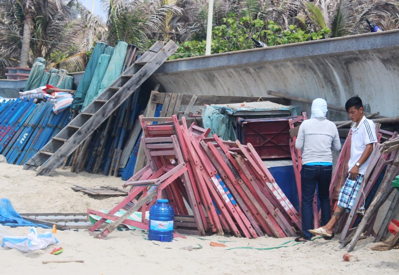 Ngoài lực lượng chức năng đang thực thi nhiệm vụ, các xã viên cũng đã tự ý tháo dỡ, đưa các vật dụng nấu nướng, thùng gỗ lên khỏi bãi biển.