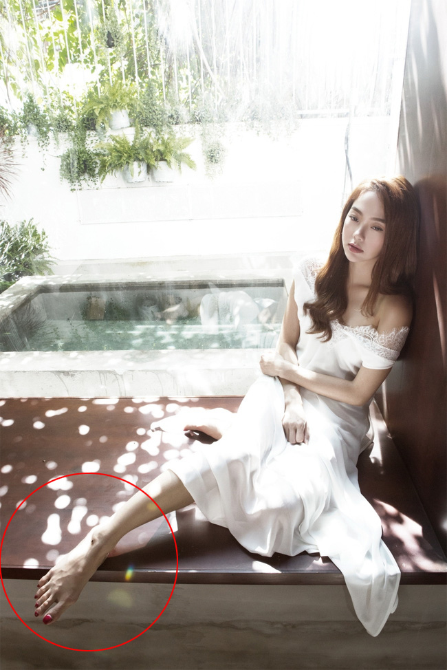 Dù đã photoshop cũng không khó nhận ra bàn chân nhiều khuyết điểm của Minh Hằng.