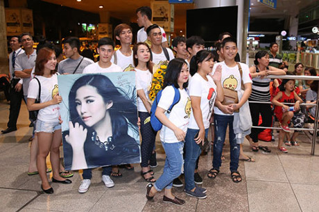 Mặc dù về đến sân bay lúc nửa đêm nhưng rất đông fan của Hương Tràm vẫn đến chờ đón cô.
