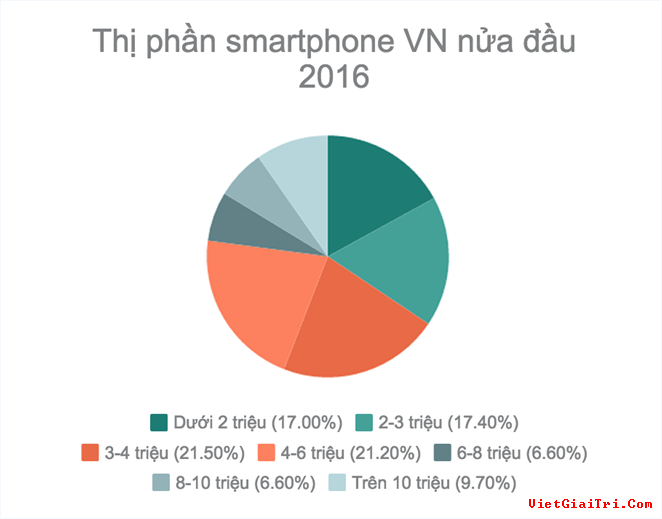Smartphone trong tầm giá từ 6 triệu cho đến trên 10 triệu ngày càng chiếm thị phần cao. Trong khi smartphone phổ thông (từ 2 triệu đến 4 triệu) không giãn nở, mà đang có xu hướng giảm mạnh.
