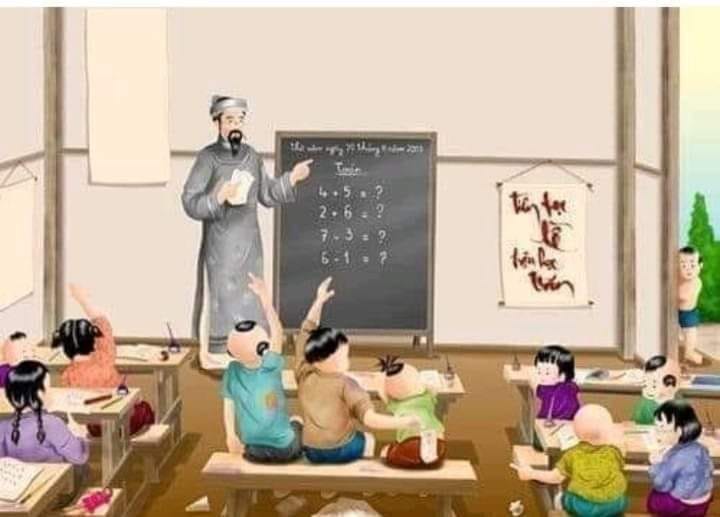 Tùng tùng tùng, tiếng trống vang lên báo hiệu đã đến giờ vào lớp không có cảnh nô nghịch, chạy nhảy nhốn nháo nữa, các bạn, ai ai vào vị trí của người đó. Sách vở để ngay ngắn trên bàn. Cô giáo bước vào lớp. Học sinh đứng dậy chào cô. Cô mặc chiếc áo dài hoa rất đẹp. Tóc cô thẳng mượt thả đến ngang lưng. Cô đặt chiếc cặp đen lên bàn và cất tiếng dịu dàng: "hôm nay có ai đóng tiền không".