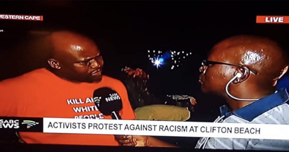 Đài truyền h́nh nhà nước SABC phỏng vấn nhà hoạt động mặc áo phông “Giết tất cả người da trắng”