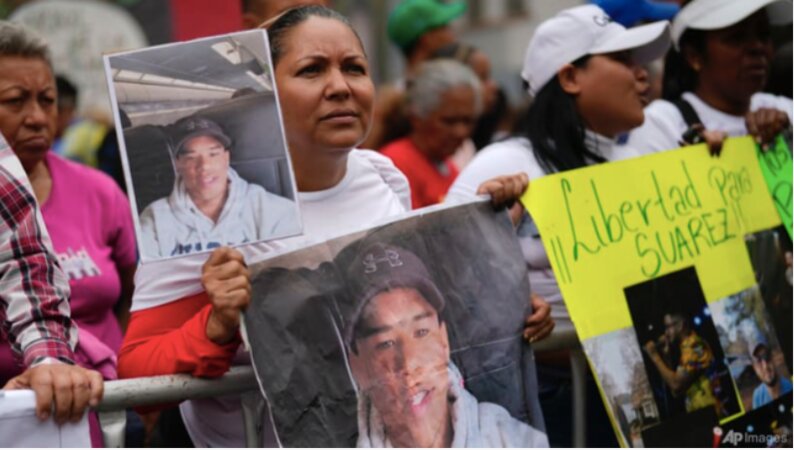 Bà Jasmin Ramirez cầm bức ảnh của con trai Angelo Escalona khi tham gia cuộc biểu tình ở Caracas để phản đối việc Mỹ trục xuất những người bị coi là thành viên của băng đảng Tren de Aragua đến nhà tù El Salvador. (Ảnh: AP)