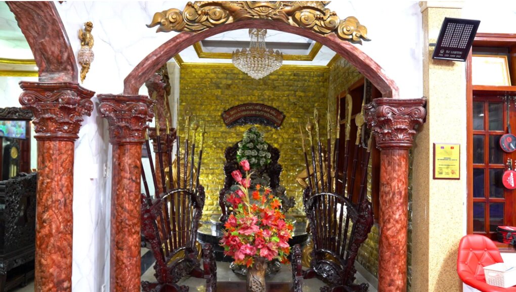 Ngọc Sơn bố trí những bức phù điêu răn dạy phận làm con ngay trong không gian sống của mình. Ảnh: Chụp màn hình