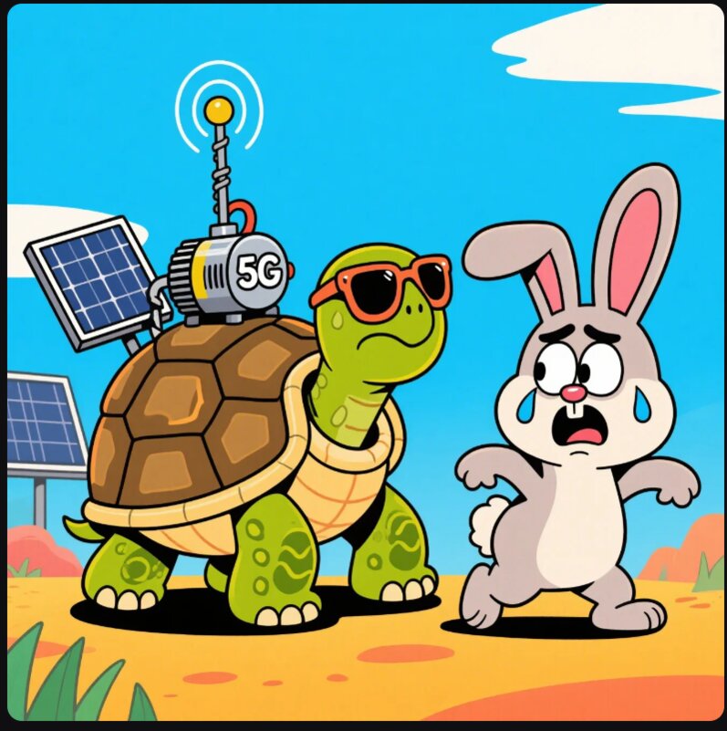 Ngày xưa, thỏ và rùa thi chạy. Thỏ ngủ quên, rùa thắng. Năm 2025, thỏ rút kinh nghiệm, không ngủ nữa. Nhưng rùa đã nâng cấp: