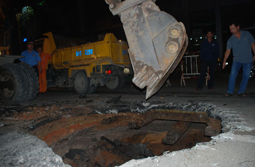 Sau một thời gian im ắng, "hố tử thần" xuất hiện lại tại trung tâm TP.HCM - Ảnh: Trần Duy |