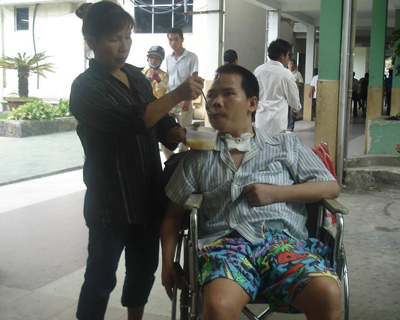 Hằng ngày, ngoài giờ qui định nằm tại phòng 310, tầng 3, khoa ngoại thần kinh, bệnh viện Đa khoa Đà Nẵng, chị Thanh đẩy con đi quanh bệnh viện mong nhận được chia sẻ từ những tấm lòng hảo tâm: từ bữa cháo tình thương cho đến vài ngàn đồng từ những người qua lại. Chừng đó chưa đủ để hai mẹ con sống qua ngày. Cái nợ thuốc thang và nhất là số tiền để anh có thể phẫu thuật vẫn là điều gì đó quá xa vời với hai mẹ con họ.