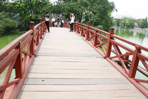 Cây cầu như dải yếm đào vắt nối ra đền Ngọc Sơn
