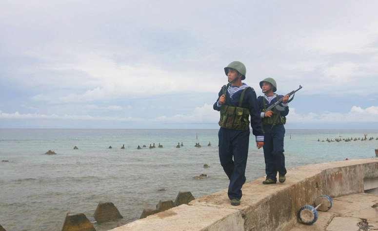 H́nh 4: Lính hải quân Việt Nam tuần tiễu trên đảo Phan Vinh [?], quần đảo Trường Sa,