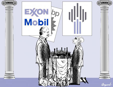 “Một chân trời mới đang mở ra”, Thủ tướng Nga Vladimir Putin vui mừng thông báo về thỏa thuận hợp tác chiến lược giữa “gă khổng lồ” dầu mỏ Exxon Mobil với tập đoàn dầu mở quốc gia Rosneft của Nga.