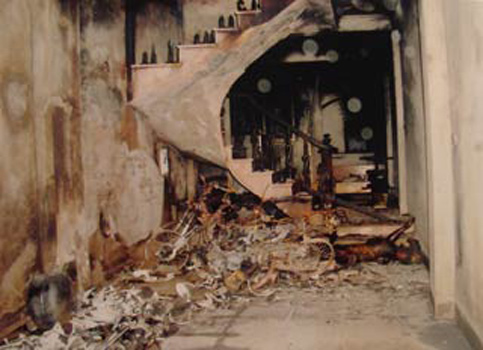Hiện trường khá ngổn ngang, 3 chiếc xe máy cháy rụi chỉ còn trơ khung. Tại bậc lên xuống cầu thang, xác anh Hưng bị cháy đen thui... Khi xảy ra vụ án, cửa sắt vẫn được khóa bên trong nên lực lượng khám nghiệm đã loại trừ khả năng kẻ thủ ác đột nhập vào từ bên ngoài.