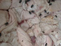 Nhiều lô thịt không rơ nguồn gốc khi bị cơ quan chức năng phát hiện th́ đă biến chất, bốc mùi hôi thối nồng nặc, ruồi bọ bu đầy. (Ảnh: trạm KDĐV Thủ Đức)