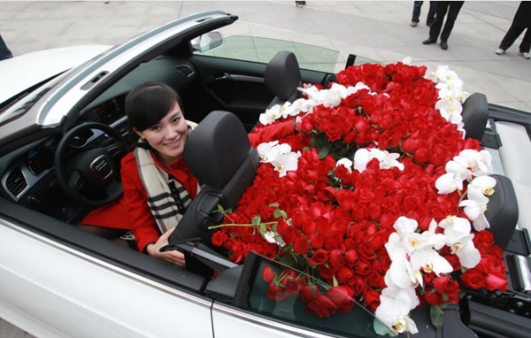 Mỹ nữ lái Audi chở 1000 bông hồng tìm... cảnh sát đẹp trai