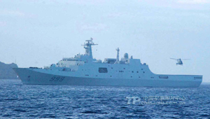 Trong mấy ngày gần đây, trên nhiều trang mạng quân sự của Trung Quốc có đăng nhiều bức ảnh về chuyến tập trận của tàu đổ bộ lớn nhất lịch sử Hải quân Trung Quốc ở biển Đông.