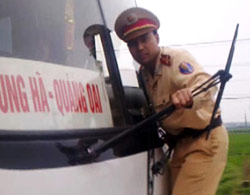 Cảnh sát đu trên cần gạt nước để chặn ôtô bỏ chạy