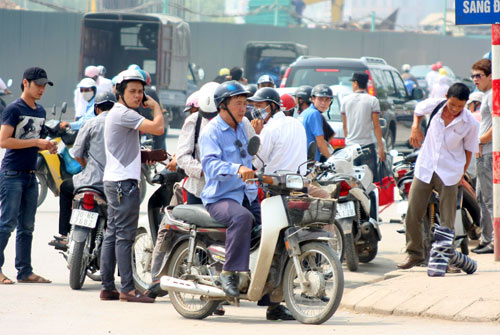 Trước cổng bến xe Mĩ Đ́nh tụ tập đông đúc hành khách và xe ôm*