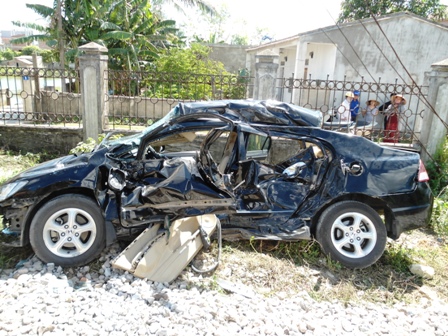 Tàu hỏa đâm ô tô biến dạng, 4 người thương vong
