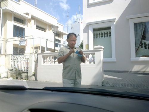 Người đàn ông này đang ghi phiếu thu tiền trái phép tại băi giữ xe góc đường Lê Duẩn - Nguyễn Bỉnh Khiêm, Q.1 - Ảnh: Đàm Huy |