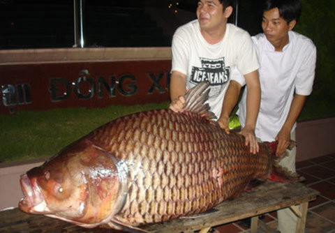Tôi chưa h́nh dung bằng cách nào những con cá hô “khủng” nặng hàng trăm kg lại có thể bị bắt từ cách săn bắt thủ công, đơn giản như vậy, th́ anh Phước giải thích: “Những con cá hô lớn luôn sống dưới đáy sông, sông càng sâu, càng nhiều hầm hố cá hô càng thích ở.
