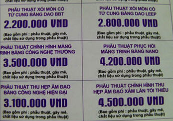 Mới sáng sớm mà một phòng khám phụ khoa nằm sâu trong một con ngõ nhỏ ở đường Trần Duy Hưng, Hà Nội đã có đến gần chục cô gái ngồi chầu chực ở đó chờ đến lượt. Bà bác sĩ tên Lan ra giá trọn gói cho mỗi lần vá trinh là 10 triệu đồng. Nhưng nếu là khách quen, bà đồng ý làm với giá chỉ 8 triệu đồng.