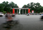 Vua Quang Trung (1753 – 1792), còn được biết đến là Quang Trung Hoàng đế, vua Quang Trung hay Bắc Bình Vương là vị hoàng đế thứ hai của nhà Tây Sơn (ở ngôi từ 1788 tới 1792) sau Thái Đức Hoàng đế Nguyễn Nhạc. Ông là một trong những lãnh đạo chính trị tài giỏi với nhiều cải cách xây dựng đất nước, quân sự xuất sắc trong lịch sử Việt Nam với những trận đánh trong nội chiến và chống ngoại xâm chưa thất bại lần nào. Do có nhiều công lao, Quang Trung Nguyễn Huệ là người anh hùng áo vải của dân tộc Việt Nam. Con phố Quang Trung dài 1.100m, đi từ phố Nhà Chung giáp với vườn hoa Tây Sơn đi tới ngã ba Trần Nhân Tông.