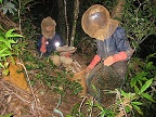 Phải mất tới gần 3 giờ đồng hồ bắt sống ong và 20 phút hì hụi dùng cuốc, xẻng để đào tổ lấy nhộng. “Tổ này nặng không dưới 15kg”- cả đội thợ săn hớn hở. Với đợt bắt này các thợ săn đã nâng tổng số tổ ong săn được từ đầu mùa lên 11 tổ và trên 200 tổ từ khi làm thợ săn ong. Cũng trong chuyến đi săn đó, 2 thợ săn “Tó Khum” tiếp tục thêm vào cơ thể mỗi người 2 vết ong đốt. Mặc dù, đêm đó rất mệt nhưng 2 thợ săn vẫn không thể ngủ được vì vết đốt bắt đầu sưng tấy và đau nhức...